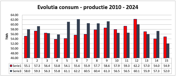Fig. 3 – Evolutia consum – productie 2010 – 2024