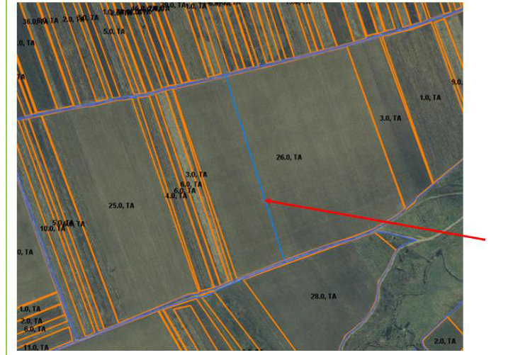 5. Terenul este in tarla 28 care insa este divizat de un drum local in doua blocuri fizice. Astfel terenul de un iugar devine doua (trei) parcele de 0.29 ha neeligibil pentru subventie…