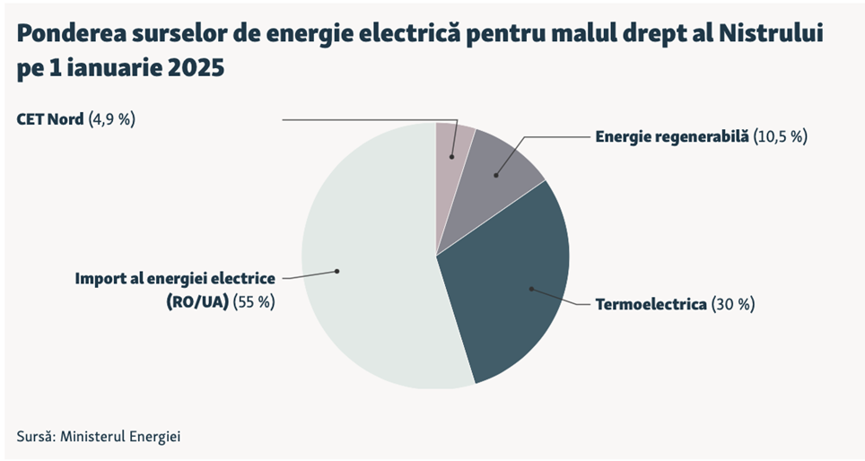 Pe malul drept, la Chișinău, lucrurile sunt mult mai puțin dramatice. Deocamdată Moldova și-a acoperit necesarul de electricitate din importul din România, peste 50%, și producție proprie. În primele câteva zile, Moldova s-a descurcat bine, se vede că supraviețuiește fără energia electrică din Transnistria, centralele de termoficare din Chișinău, Bălți, instalațiile locale de energie regenerabilă, la care se adaugă energia importată din România au asigurat funcționarea la parametri normali a sistemului energetic. Numai că, după Crăciun și Anul Nou pe stil vechi, oamenii se vor întoarce la muncă iar consumul va crește. Pentru această situație, Energocom a rezervat la granița cu România energie electrică, cumpărată de pe piață. Problema este prețul la energia pentru populație care se dublează. Și asta, tocmai într-un an electoral.