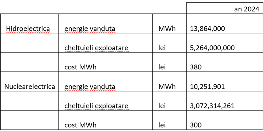 O alta observatie ar fi ca si Hidroelectrica are costuri cu „combustibilul”: in 2024 a platit pentru apa uzinata 517.805.000 lei. Daca apa ar fi gratis, costul per MWh ar fi doar 146 lei/MWh.
