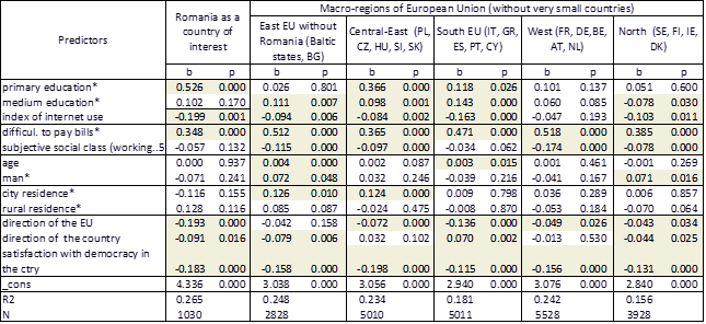 Table 2. Predicting life dissatisfaction in the country of interest and by macroregions of the European Union